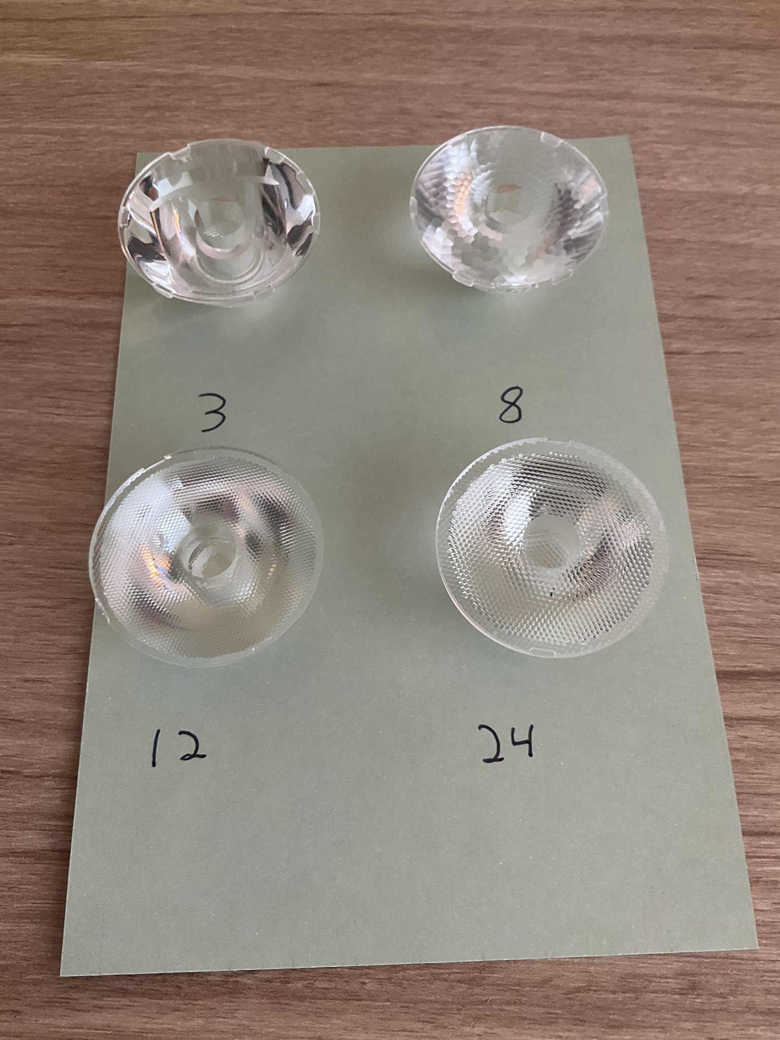 Bought a 3 degree, 24 degree and a strip beam. I cannot recommend the 3 degree lens enough for a hybrid M21H w/ XHP70.3 HI R70. It has a nice balance of spill while maintaining usable throw. The 24degrees produces a nice spill, while the strip beam produces a simple horizontal beam with most of the vertical spill cut off. An interesting choice, glad I purchased all of them