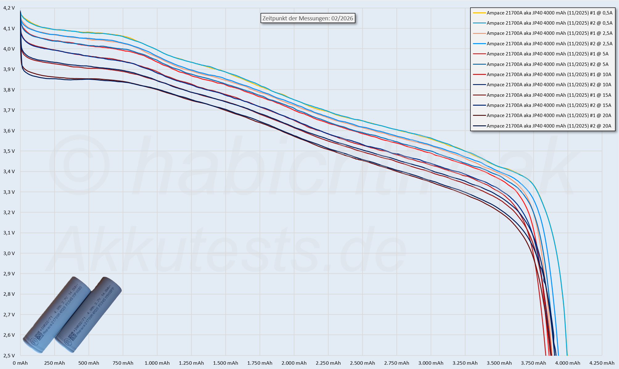 Note: I test batteries in my free time. I measure discharge curves under different loads, internal resistance, etc. However, I don't conduct long-term tests in the form of cycle tests. My conclusion from the battery test: The EVE 40P batteries are very good, and the EVE 40PL batteries are better. And the Ampace JP40 batteries? They're even better. Both in terms of voltage stability and the energy (Wh) they can deliver. Of course, the differences are very small, but within the limits of my testing capabilities, the JP40 batteries are better than the 40PL batteries. If you'd like to read the full test: https://akkutests.de/test-ampace-inr21700-jp40.html