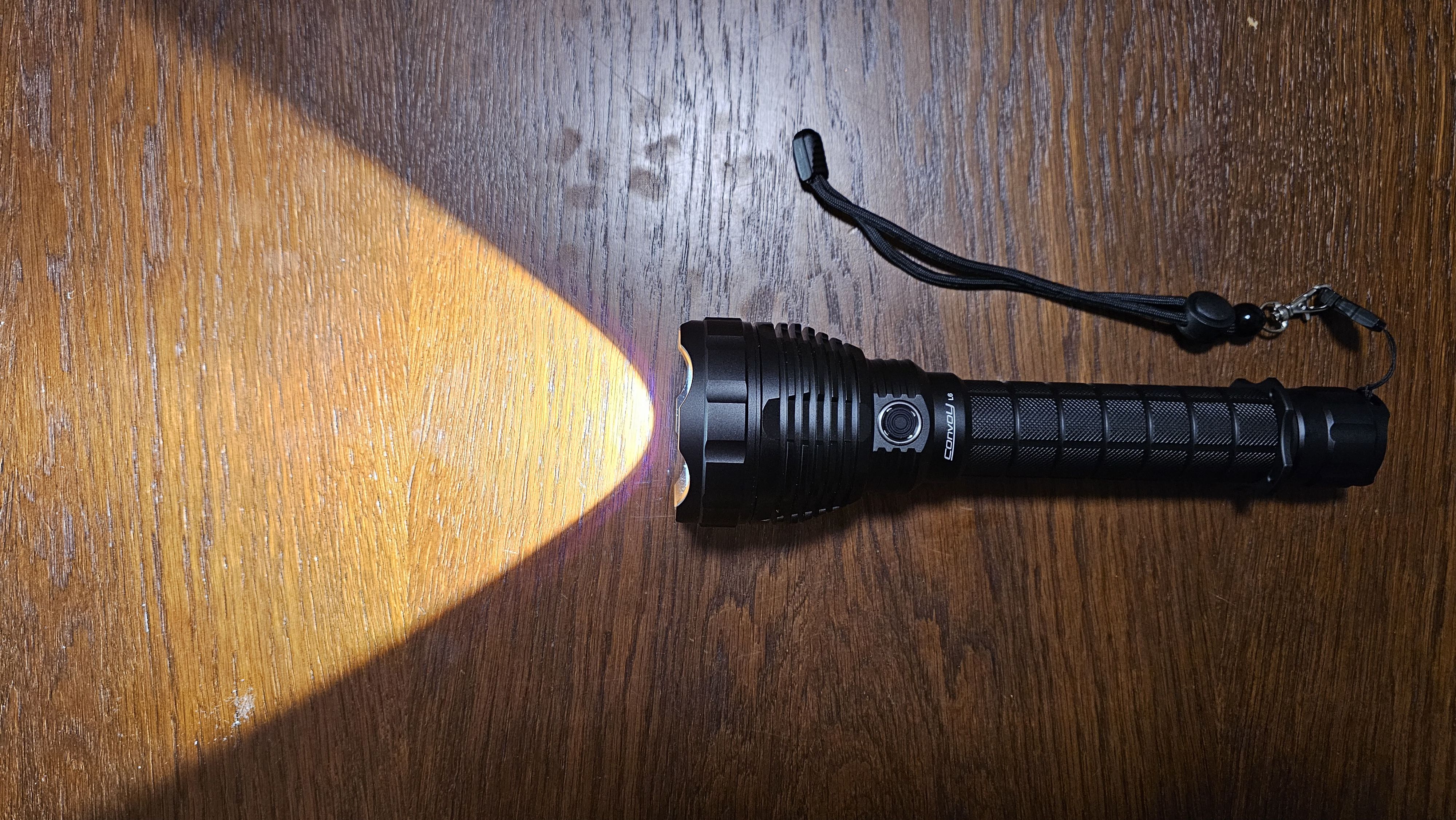 I got it with LHP73B and Vapcell P54. Full power dominates the darkness. People literally STOP and comment on how bright it is. First person I saw outdoors with it said "that is one nice flashlight", it's the brightest thing normies have ever seen in their lives! Aside from this, I run it on full power mostly and heat is totally manageable, nowhere near the point where you'd injure yourself touching the head, it was a nice surprise. Build is solid and there's a sort of tactical/anti-roll ring in the box too which is probably my favourite feature, as it provides a good gripping place in case you ever needed to use it to knock tent pegs in, and gives more placement options for a lanyard. I put a 550 paracord lanyard on this big boy, believe me, it needs it. Honestly so impressed I'm now eyeing the L7 aswell.