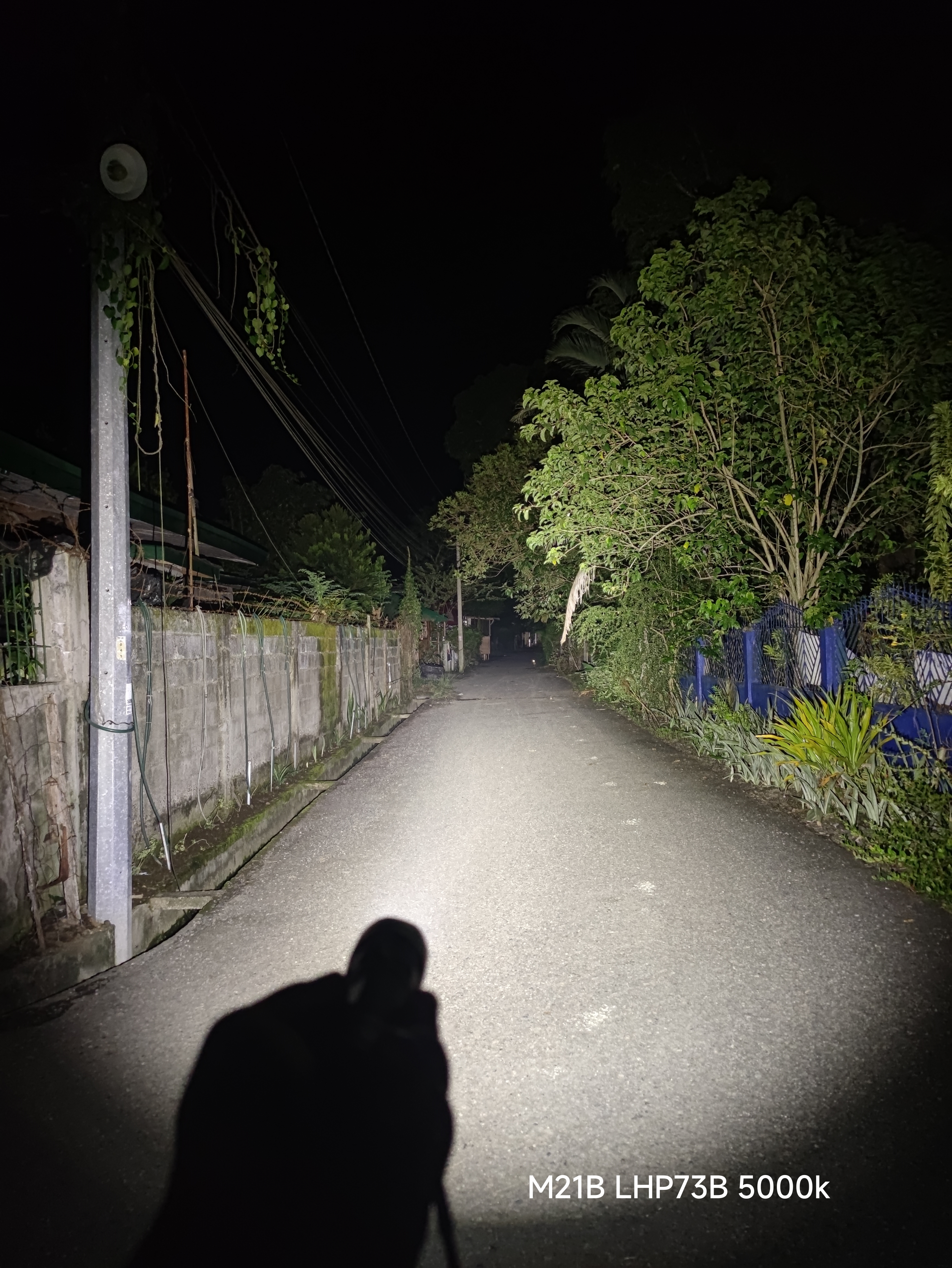 I received my M21B yesterday. I ordered the orange flashlight with LHP73B diode and Molicel P45B battery. Using my diy light box I came up with the approximate readings as follows: 0.1%=1lm, 1%=100lm, 10%=1000lm, 35%=3000lm. I could not measure 100%, as it's beyond the range of the lux meter in the box. It's extremely bright, though my M21G with the LHP73B is slightly brighter at 200 meters at night. Both have a well defined spot that throws and a blending flood. Even though both have the same LED the M21B is noticeably cooler, but I ordered both in 5000K. I'm not sure why. I'm still wrestling with the 20 taps to get it to go into the program mode. It is stable at 35% for two minutes, then slowly ramps down to 10% and holds.