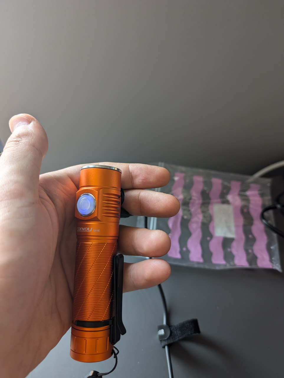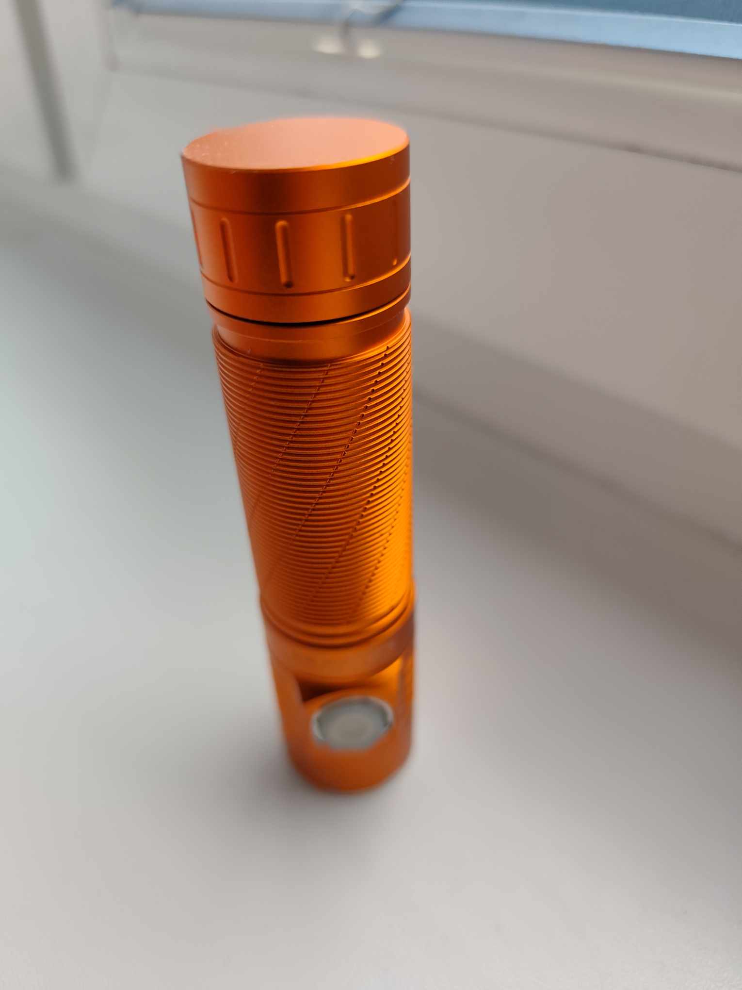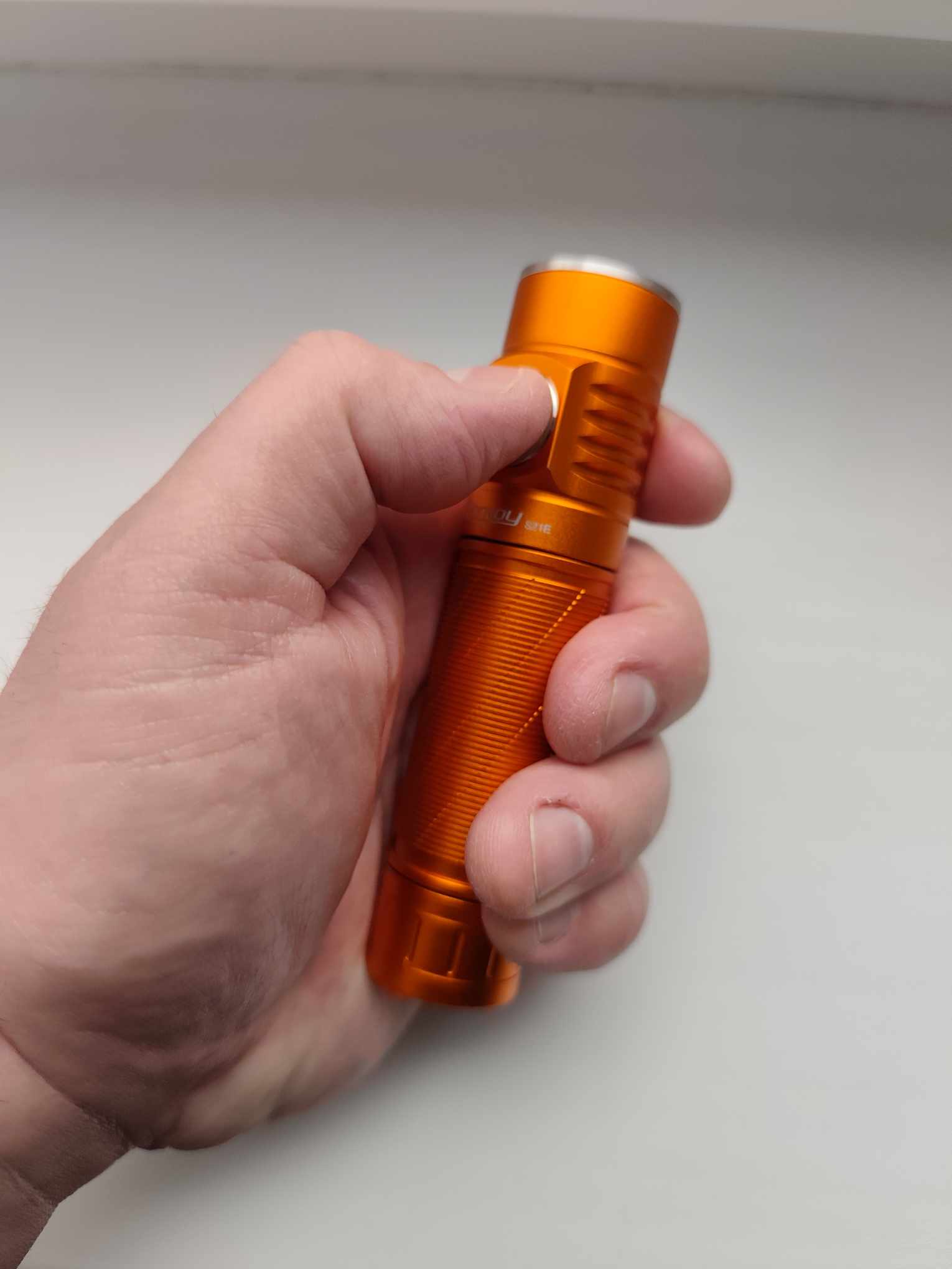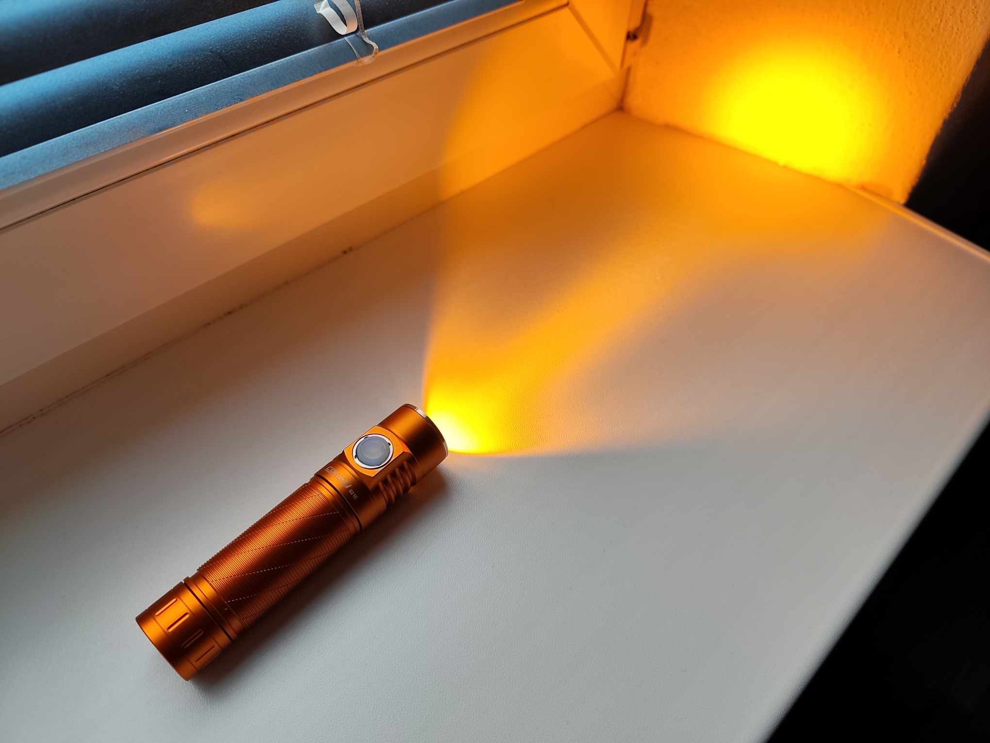 I had the orange version of the s21e flashlight fitted with the lhp531 chip with a light temperature of 1800K and an anduril driver. I love warm orange light, and the orange color of flashlights. Orange is absolutely beautiful in the forest. It will never be as real in a photo taken with a phone as it is to see and feel in person. I really like the Chinese lhp531 chip and its other versions for their versatility and performance. A small flashlight that fits in your hand, even in the smallest trouser pocket, and yet so powerful. Not only does it illuminate a wide area (and I didn't fit a tir lens into the flashlight, I left a reflector there), but it can also shine quite far. In the attached photo, you can see objects up to 200+m away! A very versatile light. It only lasts a short time on turbo due to the temperature, but you will only use the turbo occasionally for long-distance lighting anyway. This is not the only s21e I have. I already have the version with b35am and 519a. They are all beautiful. I really like the s21e. The Anduril version with a temperature of 1800K can also be used in candle mode for atmosphere in the bath, or elsewhere. The only complaint I have about the Anduril version is the button, which lights up continuously when turned on and cannot be turned off. And the lamp itself lacks a very strong built-in magnet to be perfect.