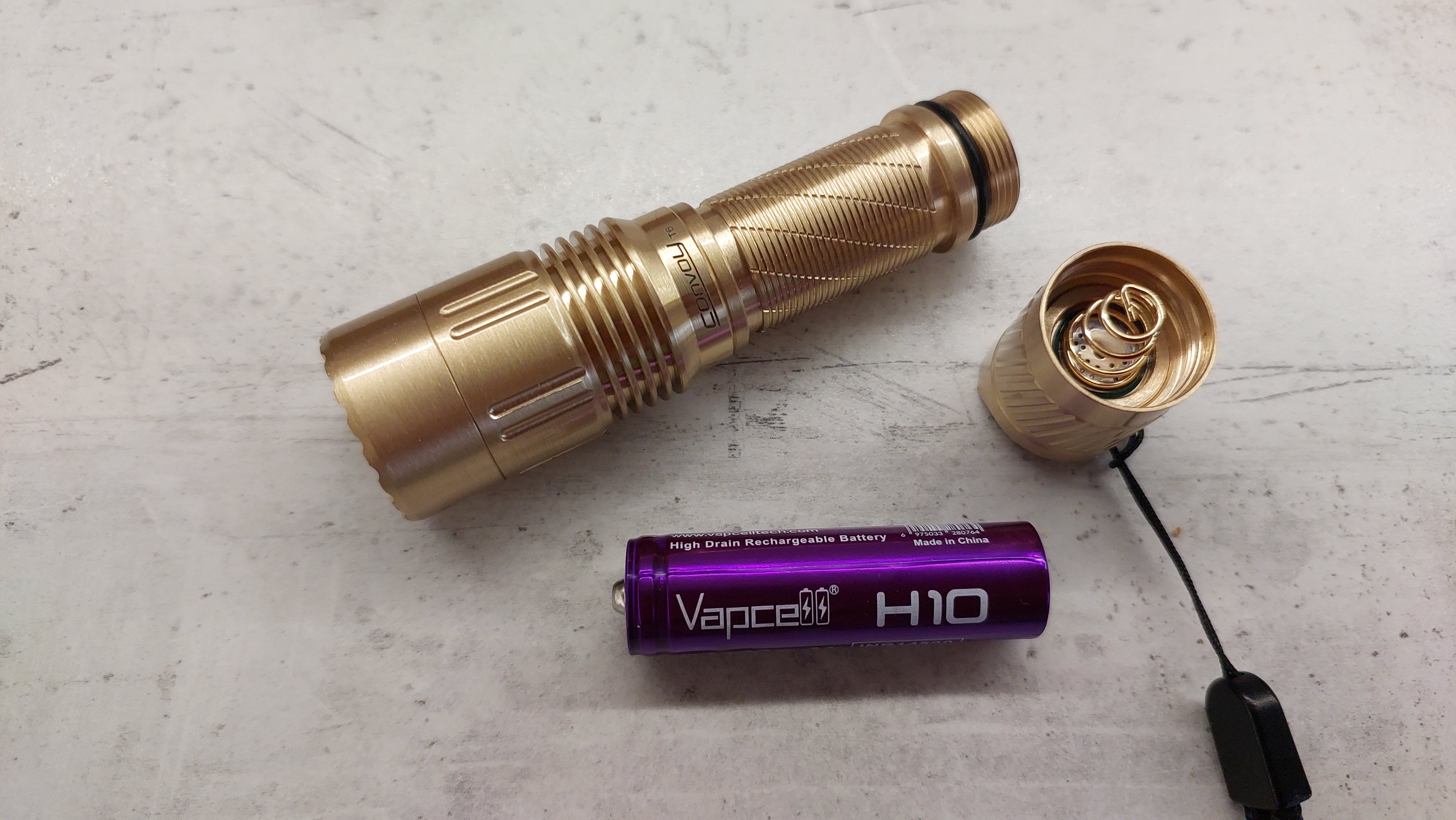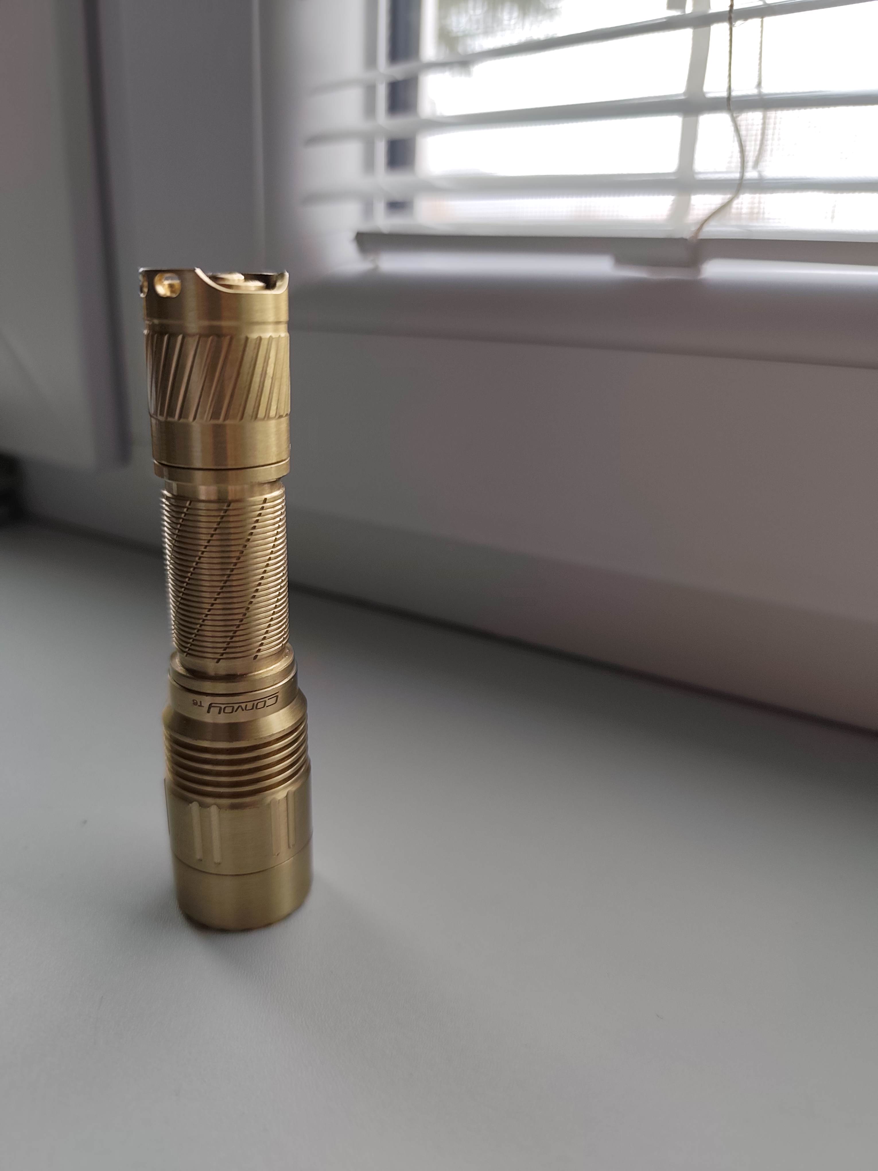 DUDE. What an amazing light! for under 30 bucks shipped I received a light that is similar or better quality than any Acebeam, Olight, and other high end lights I've purchased. I can't believe what I received cost me any less than $100. seriously, I can't believe I've spent my money elsewhere up till now. I will be a return customer for as long as Convoy is selling lights. Between the customization, high quality machining, and amazing customer service dealing directly with Simon, Convoy lights is totally unrivaled. best in the business hands down. Thank you for what you do, Simon. I will be reccomending Convoy to anyone that will listen, and can't wait to order a few more lights. Convoy T6-Brass.