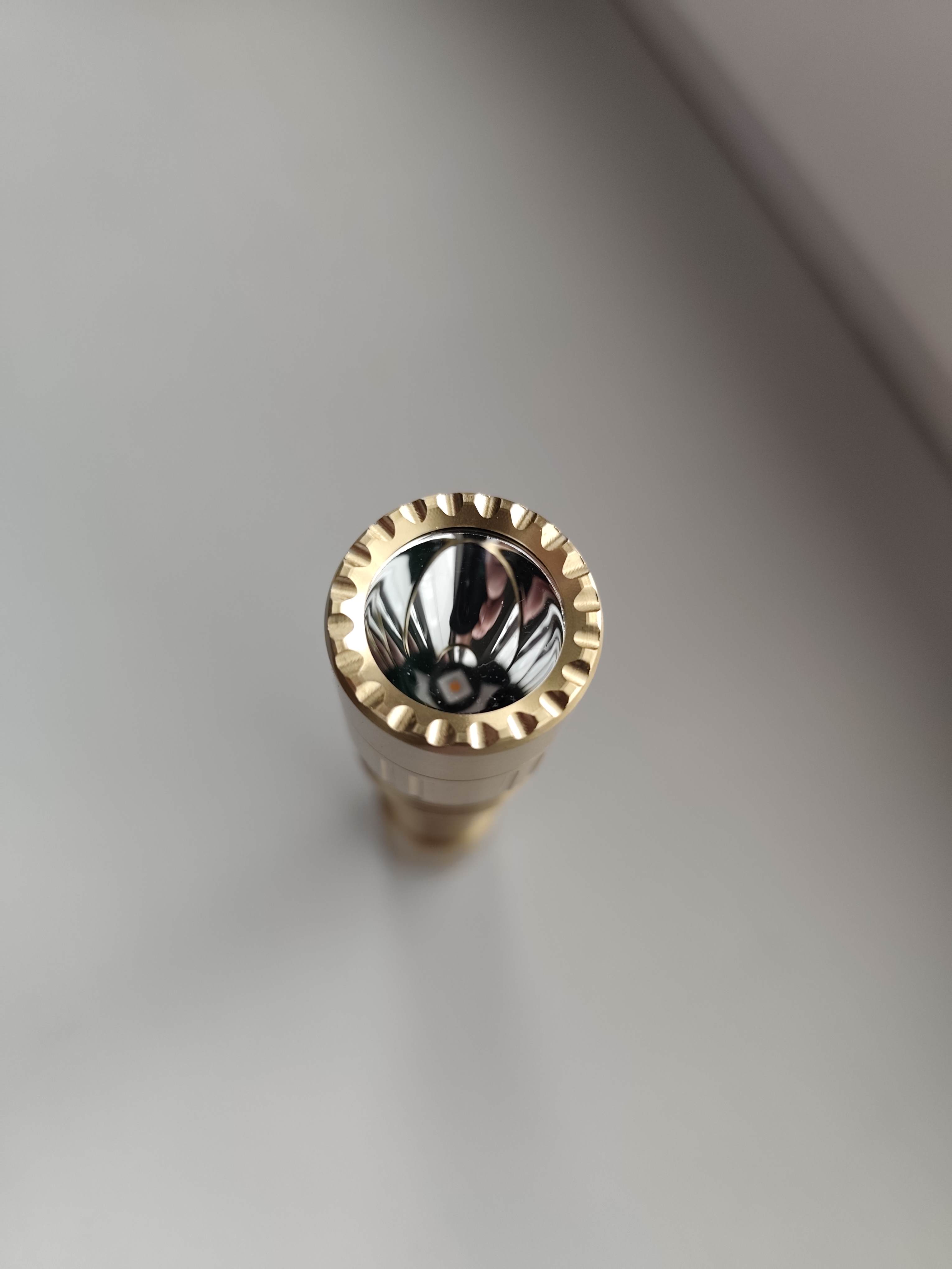 The T6 is such a beautiful flashlight to look at. And incredibly powerful for its size and battery. The brass version is heavier, but absolutely beautiful. I chose the orange cslnm1. fy chip in it so that I have a light that is pleasantly warm and breaks through the fog as opposed to cold. I can see objects 150 to 200m away with it. The ANSI range will be about 450m. I love this flashlight and I also always have it with me in my carry-on bag, just like the T7. Moreover, these flashlights feel like fidgets that calm me down, so I often play with them like fidgets, even when I don't need to light them right now. I have already ordered more T6s. Convoy lights immediately became number 1 for me and all my previous ones faded into the background. Incredibly beautiful, high-quality and cheap flashlights.