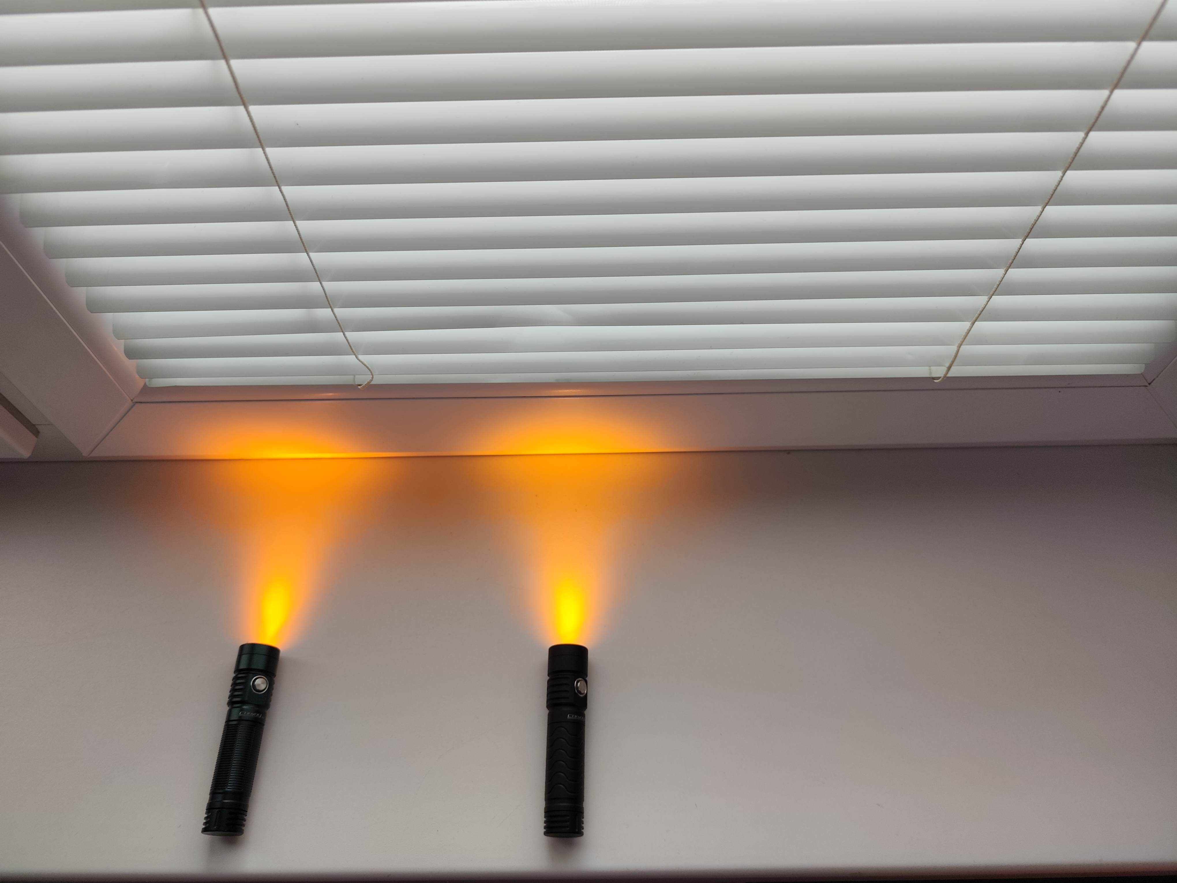 I bought this flashlight with nichia 519a and a light temperature of 1800K. I also have a black version of this flashlight with nichia 219b and also a temperature of 1800K. 219 is warmer, more beautiful and more pink. But after removing the dome from 519, 519 is more pink and the temperature has moved up to about 1400K. Both are beautiful. When lit in the dark outside, 219 is completely natural despite the pink shade. 519 without a dome is already slightly over the limit. The lantern itself is nice and practical. It shines surprisingly brightly and illuminates the surroundings 30m in the dark quite adequately. The on/off switch is better on the original black version and the USB charging on the new colored version of the flashlight