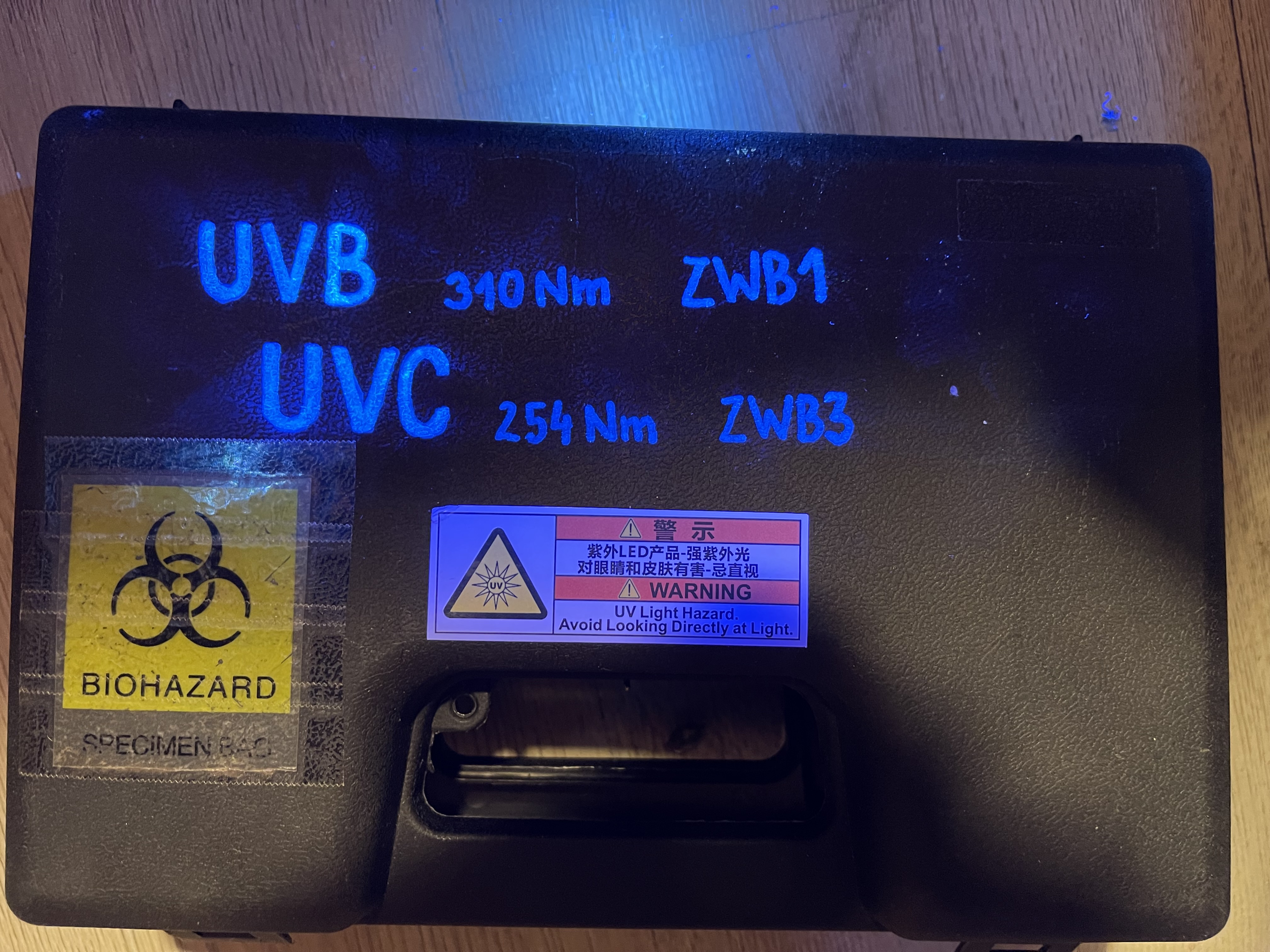 I agree with the previous message, reliable UVC light. And indeed, there should be a clear warning on the outside, stating its danger, especially as the UV is hardly visible. I did it myself, you never know who will find the light one dayl
