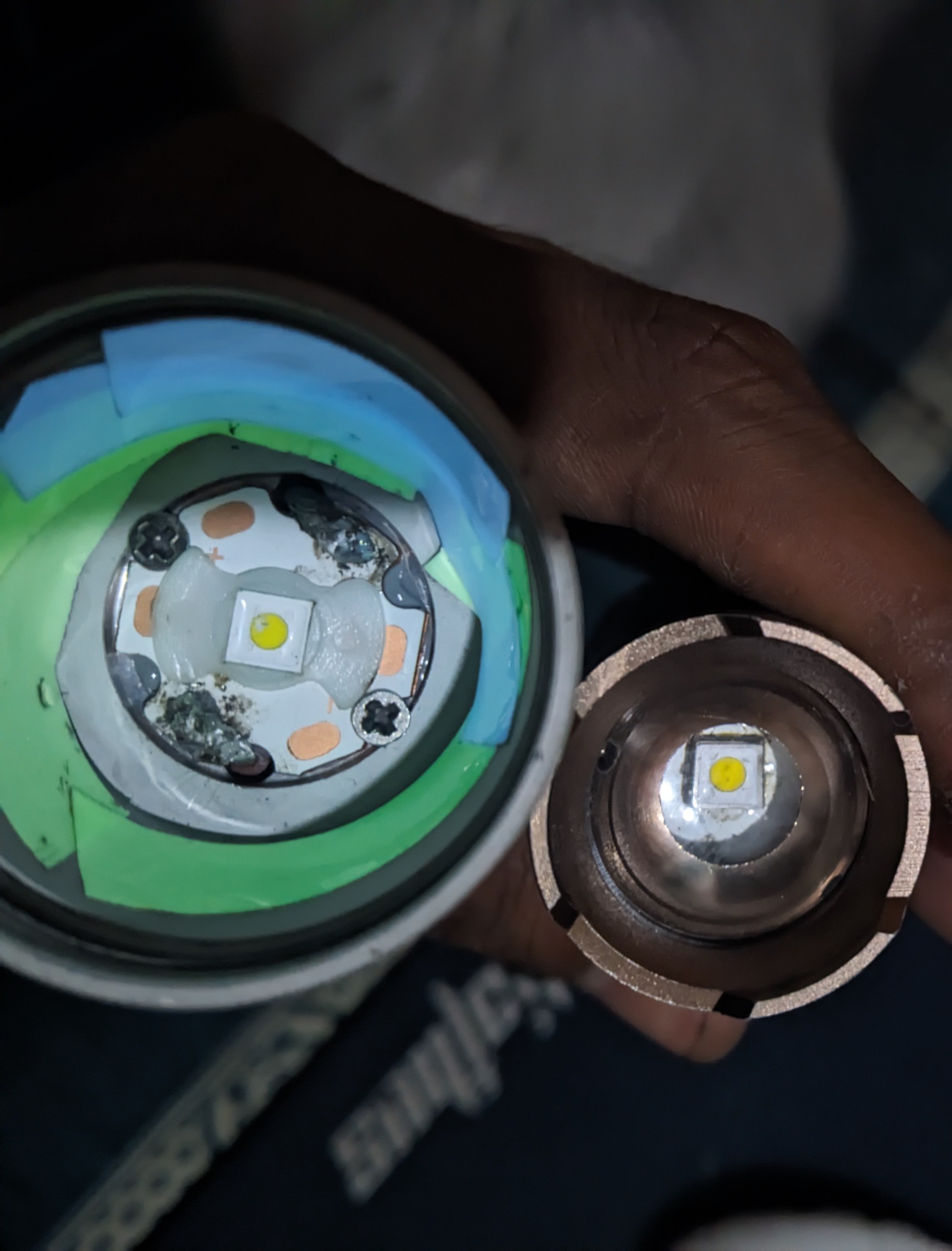 I will admit my use case was wrong in this instance, however the sft25r will still have far more "sustained" throw, the die is half the size of sft40 and even smaller than 42r to my knowledge, it has far more candela per watt if that was a metric. Also the 42r phosphor layer is unfortunately more brittle than all the other luminous emitters of sft series that I've tried. The tir lens in m21h damaged the phosphor but the led is still working with slight tint shift. Best use case for this led is in large reflector lights with more thermal mass and big batteries , the 25r is far superior as a thrower led. The 42r is less throwy than sft40, much bigger hotspot in the same lights tir/reflector based when compared to sft40, it also uses 2amp extra, I'm not a fan, sft40 is still king very well balanced, 25r will outhrow 40/42r efficiently too, the sft-12 might be a decent contender but lacks the brightness. For larger reflector based lights like l21b I would choose 42r over 25r any day, but in tir lens or smaller hosts it doesn't make any sense.